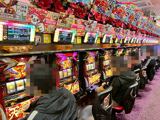 14時過ぎのパチスロでは、ボーナスタイプがとくに盛況となっていた。