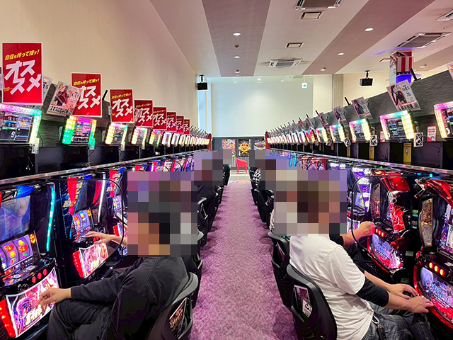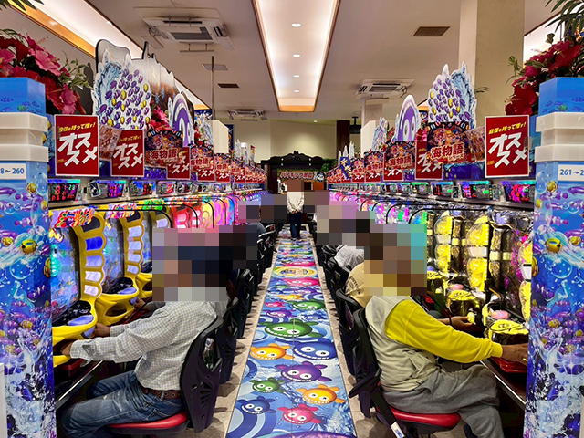 パチンコでは、「PA大海物語5ブラックLT99ver.」や「e 東京喰種」に空き台がなく、明るい雰囲気に包まれていた。