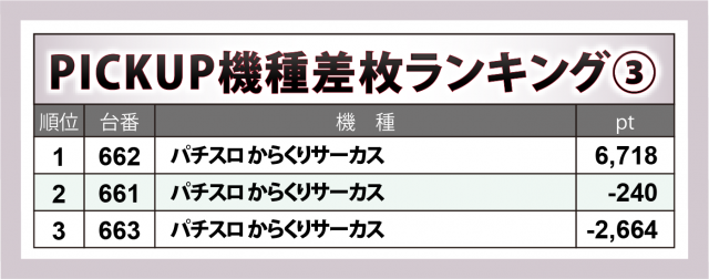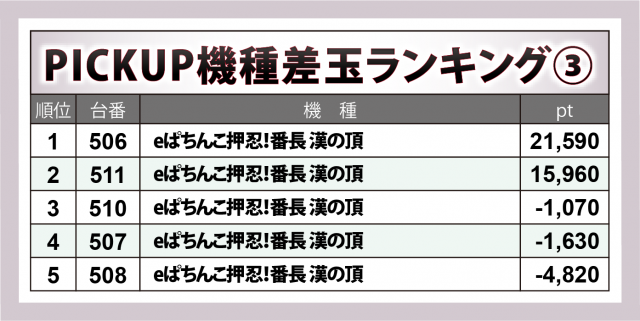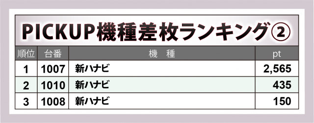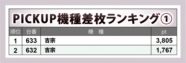 合計8台のうち6台が勝利とプラス率は高く、その6台では3分の2となる4台が4桁の差枚数を導いた。