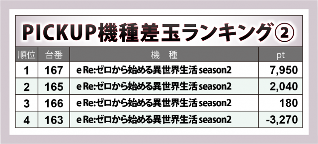 以下、出玉データから当日の状況をジャンル別に調査していこう。