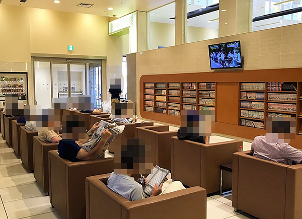 マンガや雑誌があるレストスペースも好評。設備が充実していることも、プレイヤーから支持を得ているポイントなのだろう。