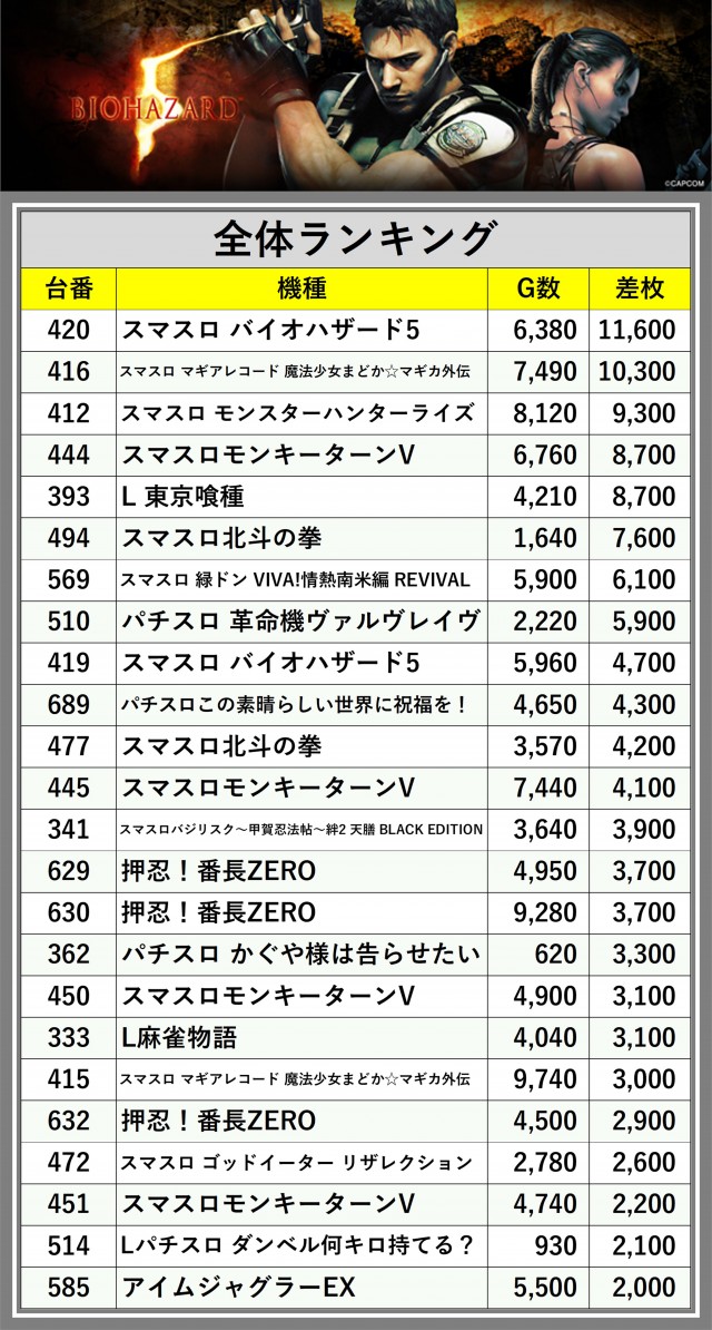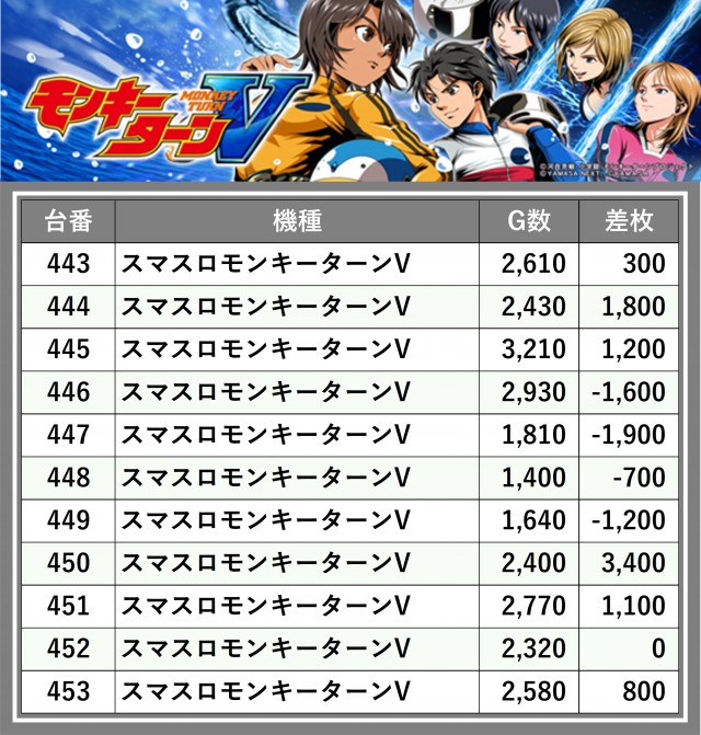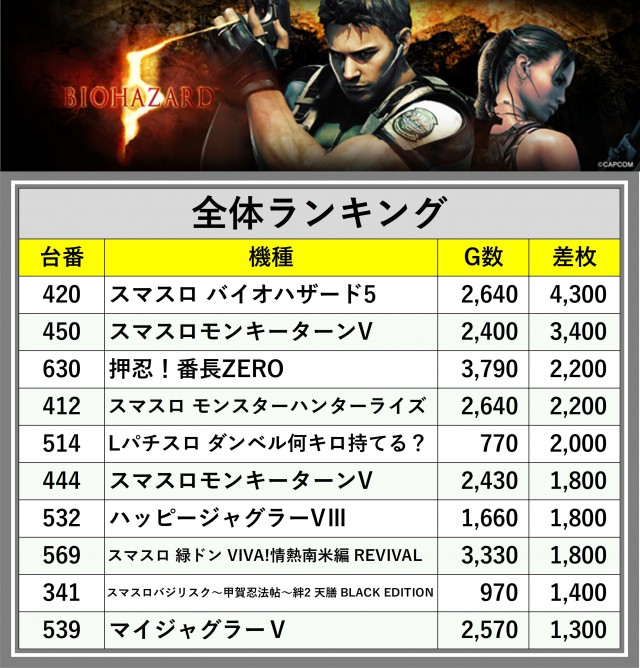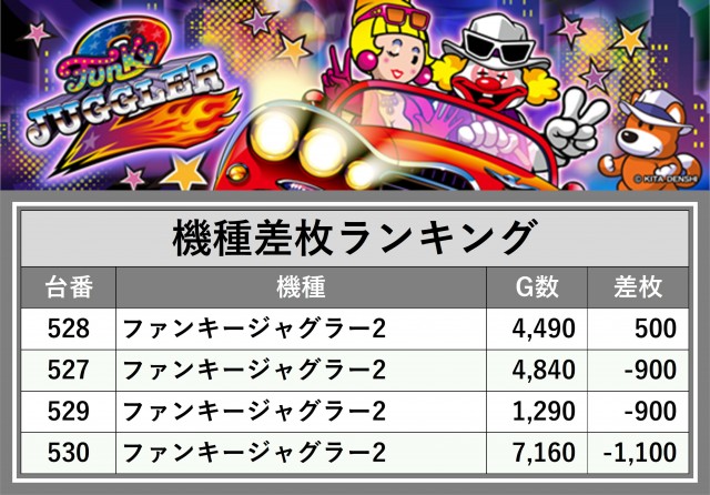 厳選された取材対象機種をはじめ、その他スロット全体から好記録が飛び出した!プレイヤーが楽しんだ1日を下記データにて振り返ってみて欲しい。