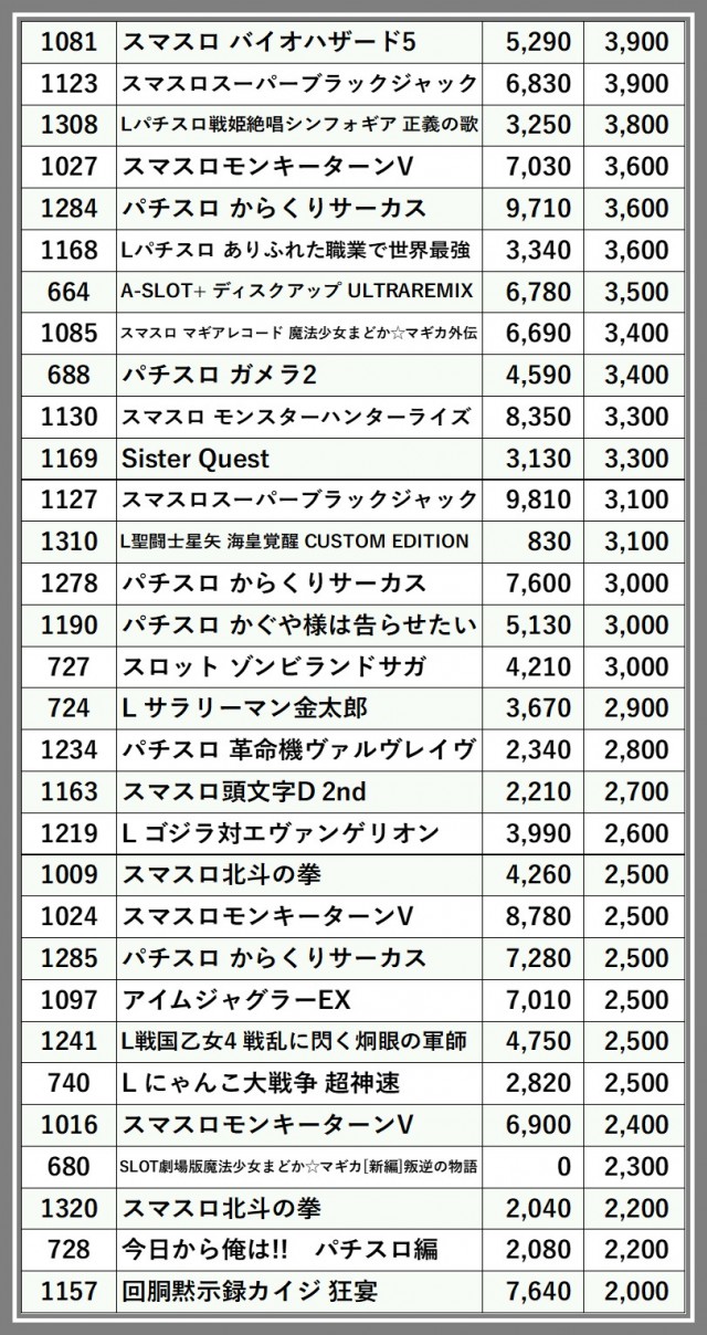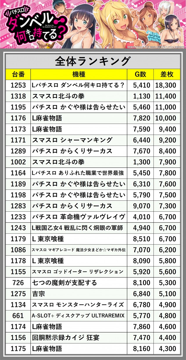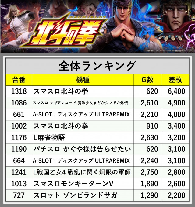 厳選された取材対象機種をはじめ、その他スロット全体から好記録が飛び出した!プレイヤーが楽しんだ1日を下記データにて振り返ってみて欲しい。