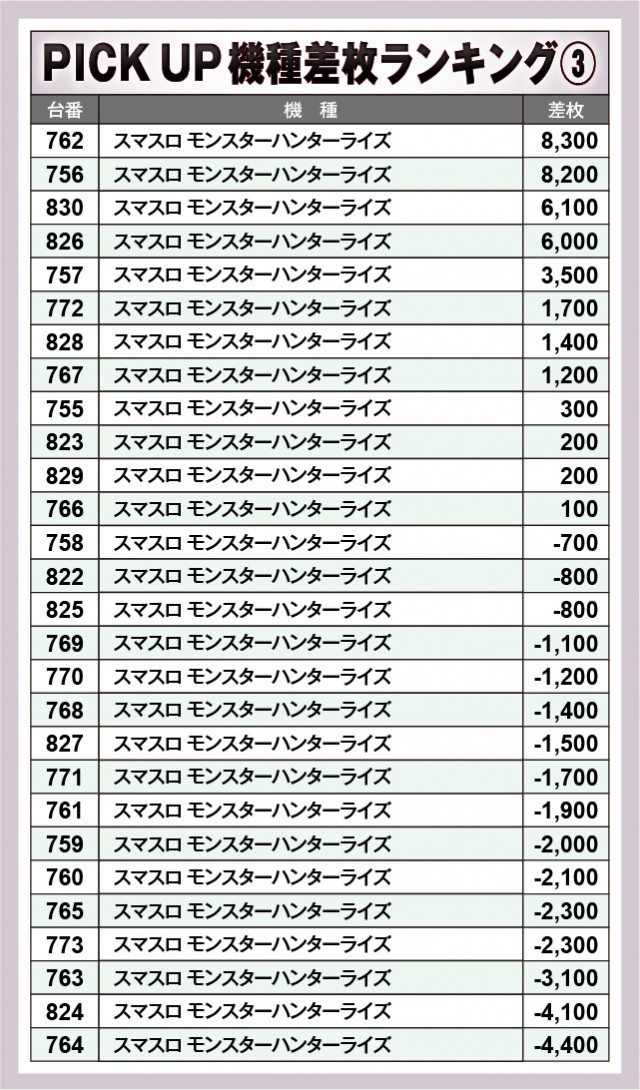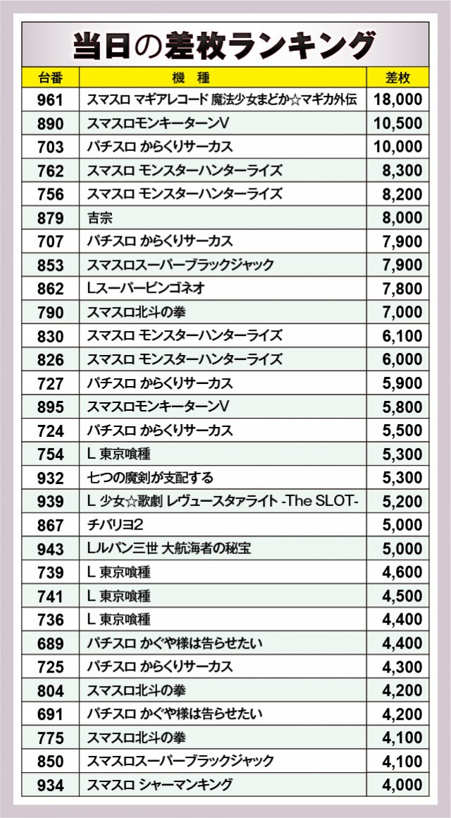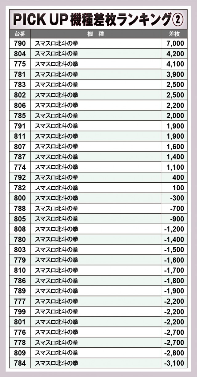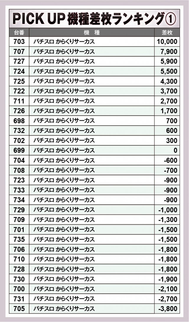 ※差枚数順に掲載しています。