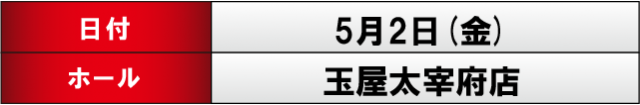5月2日、『玉屋太宰府店』にて「たまピー来店取材」が実施された。開店直後は、心待ちにしていたプレイヤーが明るい表情で遊技をはじめていたのが印象的だ。果たしてどれほどの盛り上がりを見せていたのか、ここからは詳細データとともにチェックしていこう!