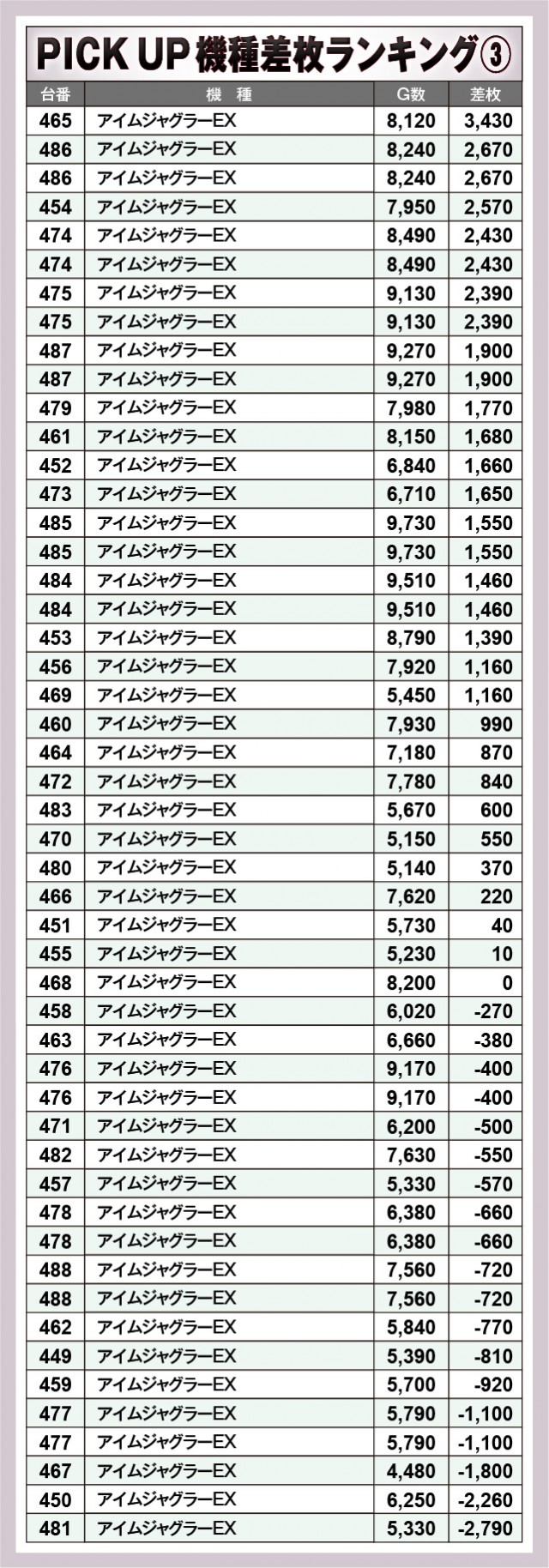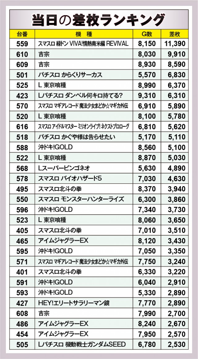 ※差枚数順に掲載しています。