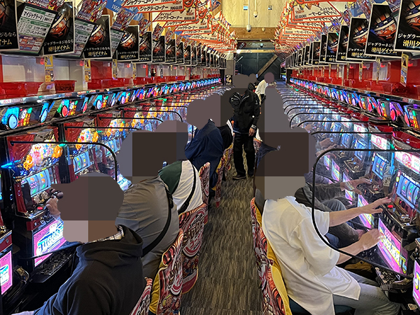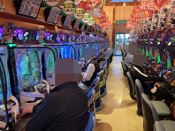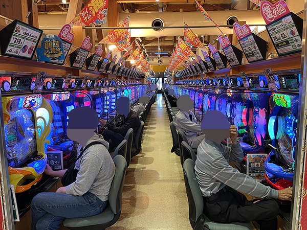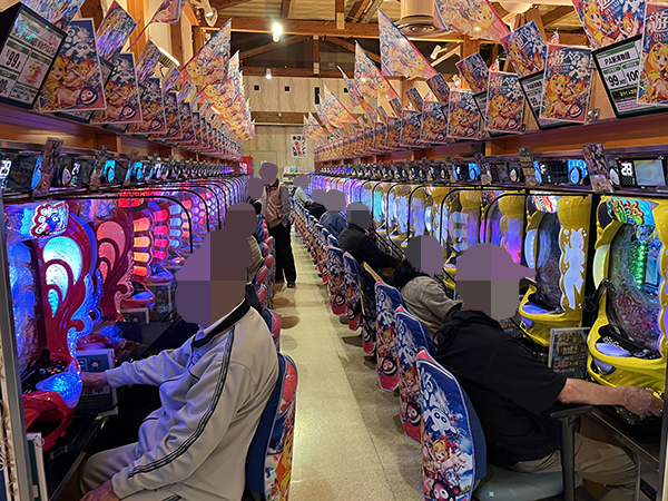 14時ごろの4円パチンコを見ると「P大海物語4スペシャル」などの海物語シリーズや「新世紀エヴァンゲリオン〜未来への咆哮〜」、「e Re:ゼロから始める異世界生活 season2」が盛況の様子。華麗なパフォーマンスを披露するプレイヤーを多数目撃している。
