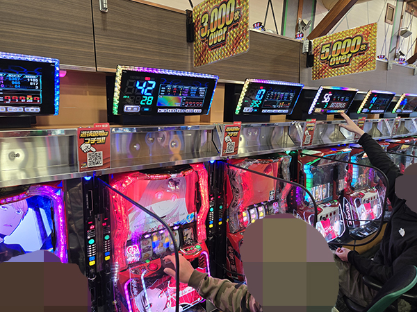 16時半ごろの4円パチンコをチェックすると、「新世紀エヴァンゲリオン〜未来への咆哮〜」や「e 東京喰種」で好調なプレイヤーを確認。時折見せる嬉しそうな様子が印象に残っている。