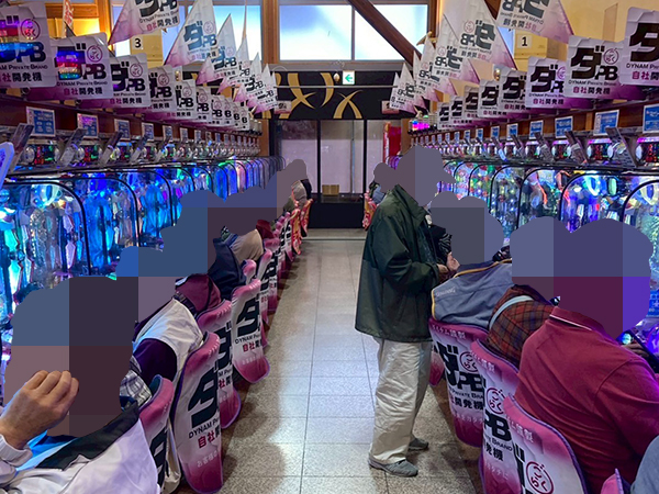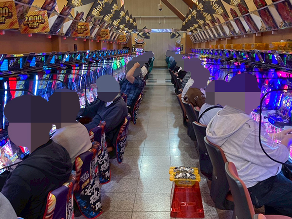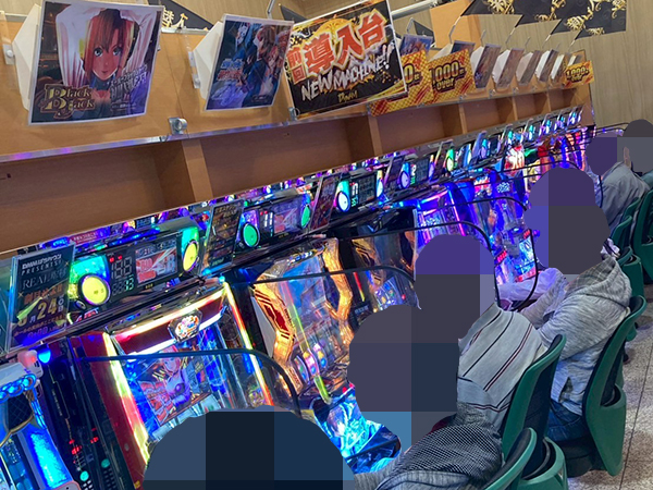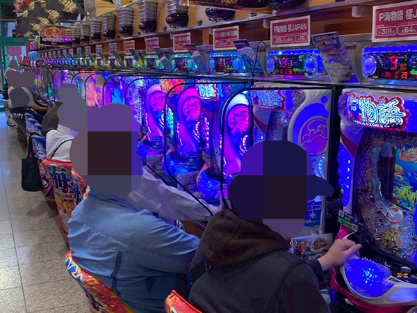 取材時は多くのプレイヤーが来店。パチンコ・パチスロともに、様々な機種が支持を得ていた。
