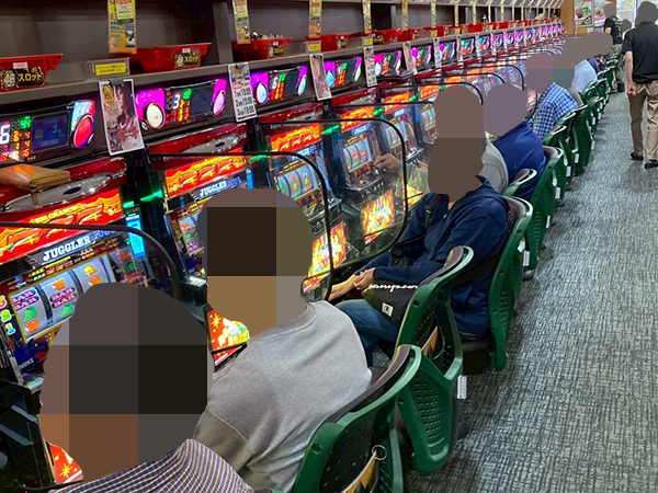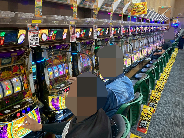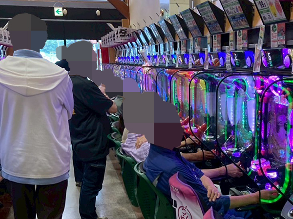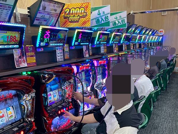 取材時は多くのプレイヤーが来店。パチンコ・パチスロともに、様々な機種が支持を得ていた。