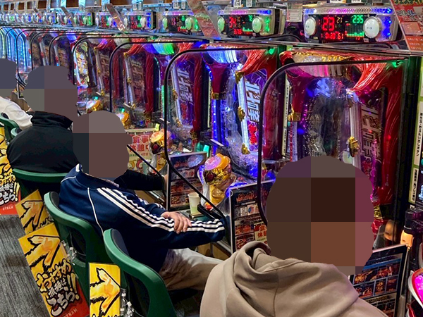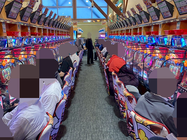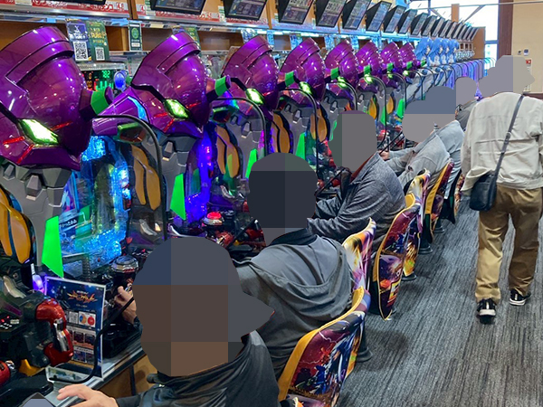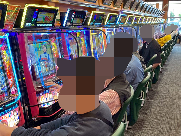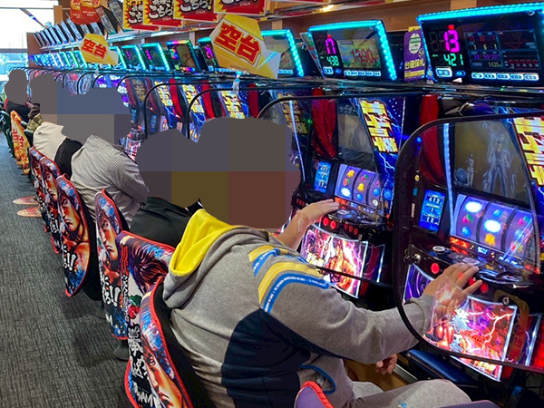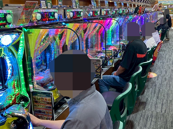 取材時は多くのプレイヤーが来店。パチンコ・パチスロともに、様々な機種が支持を得ていた。