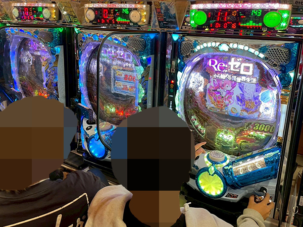 15時半ごろの4円パチンコをチェックすると「P Re:ゼロから始める異世界生活 鬼がかりver.」や「P真・北斗無双 Re:319ver.」が盛況の様子。プレイヤーたちの満足気な様子が印象に残っている。