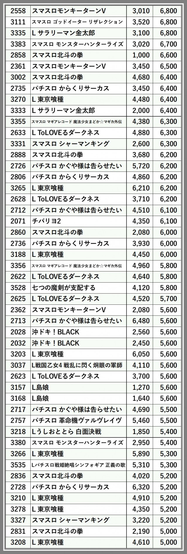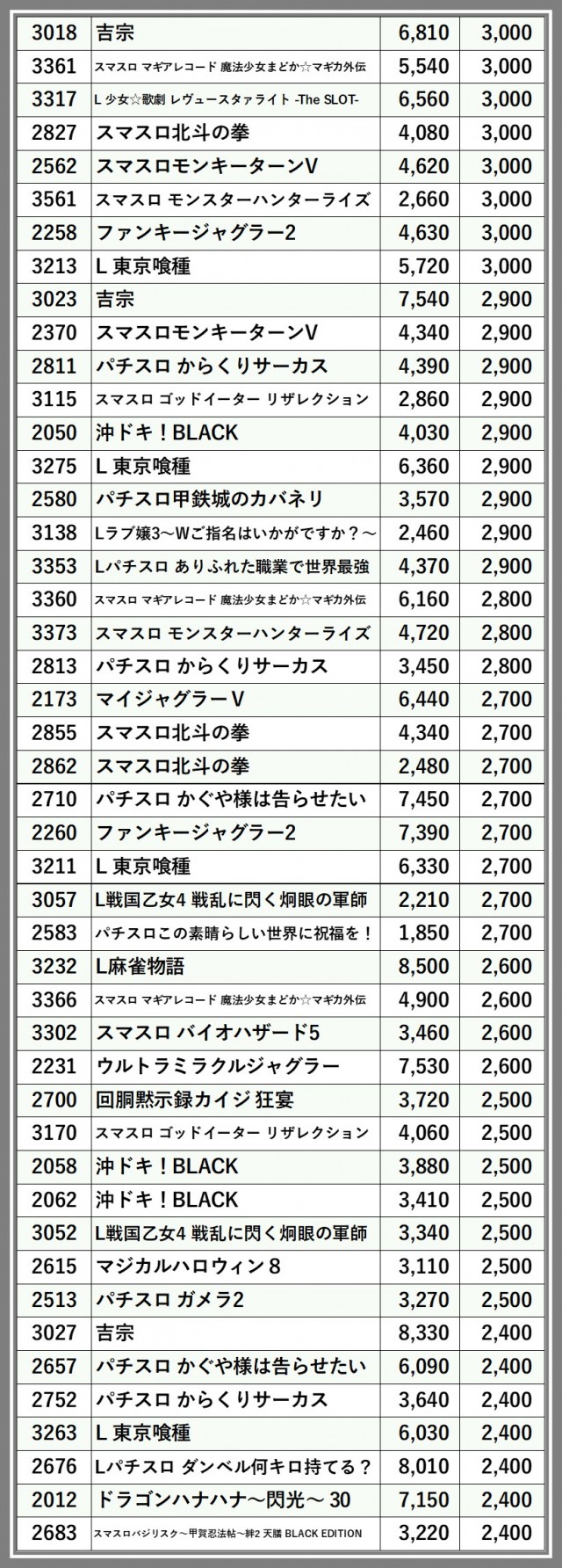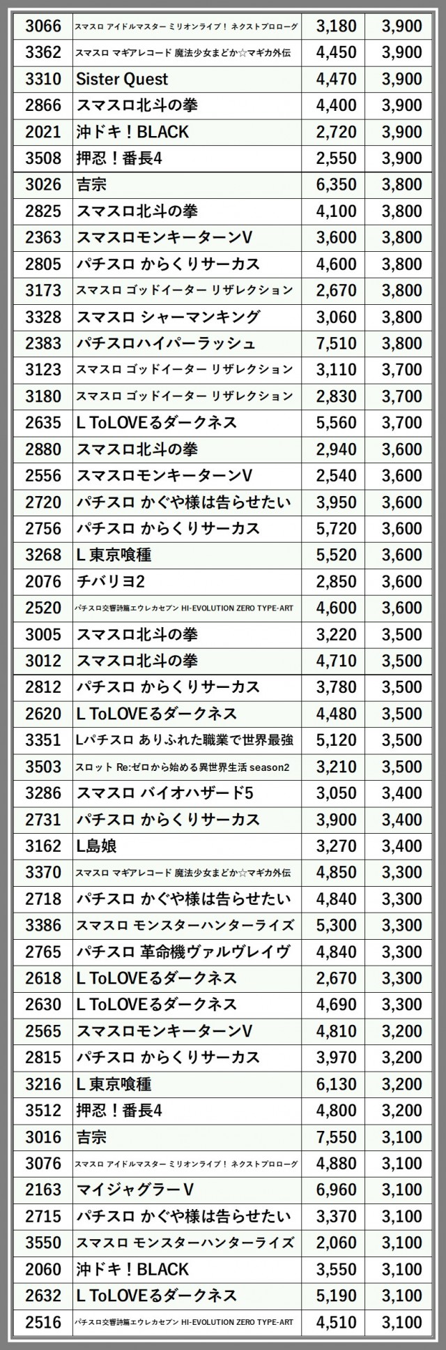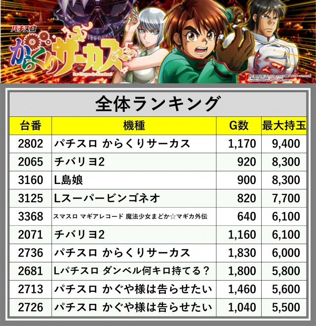 厳選された取材対象機種をはじめ、その他スロット全体から好記録が飛び出した!プレイヤーが楽しんだ1日を下記データにて振り返ってみて欲しい。