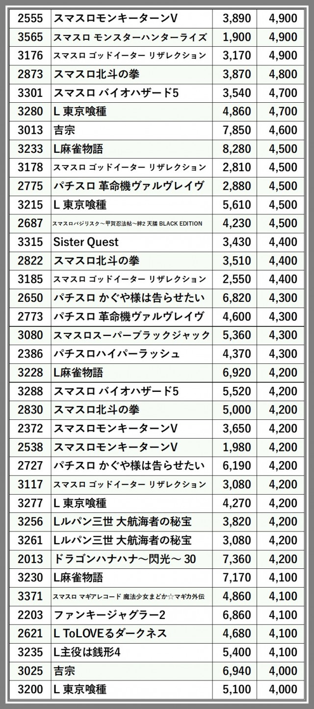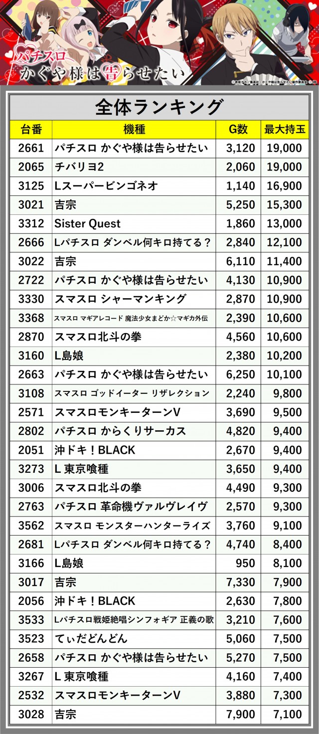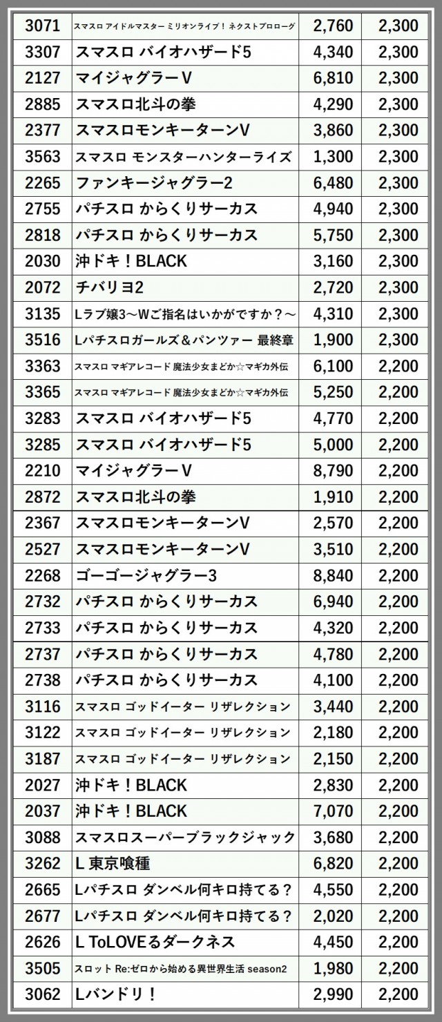 厳選された取材対象機種をはじめ、その他スロット全体から好記録が飛び出した!プレイヤーが楽しんだ1日を下記データにて振り返ってみて欲しい。