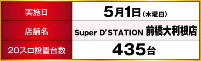 Super D’STATION前橋大利根店 差枚ランキング(5月1日)