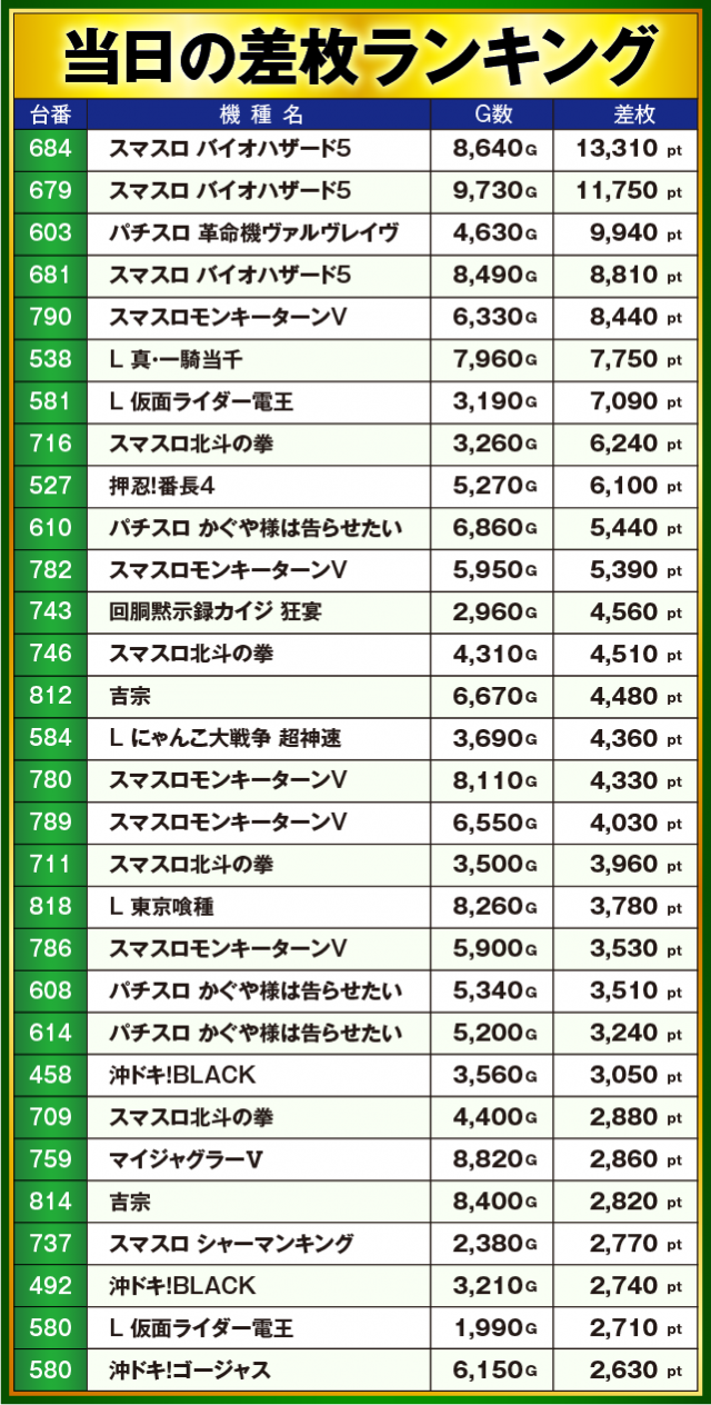 レポートの最後に「Super D’STATIONガーデン前橋店」の差枚ランキングも掲載!