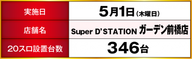 Super D’STATIONガーデン前橋店 差枚ランキング(5月1日)