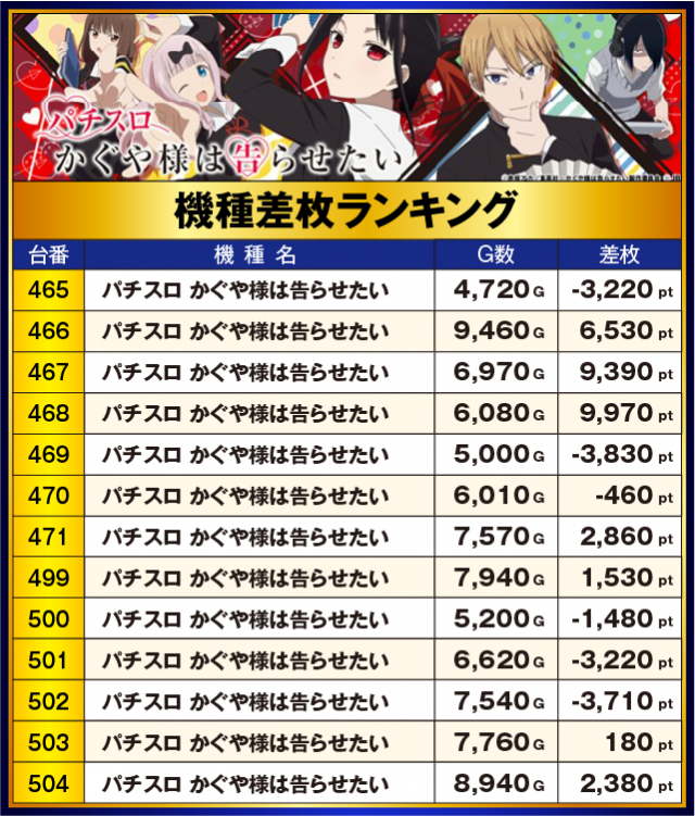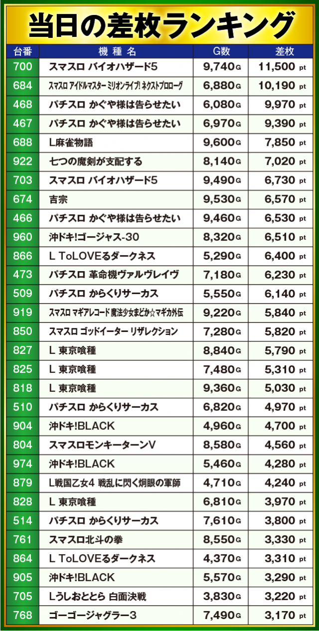 レポートの最後に「Super D’STATION高崎本店」の差枚ランキングも掲載!