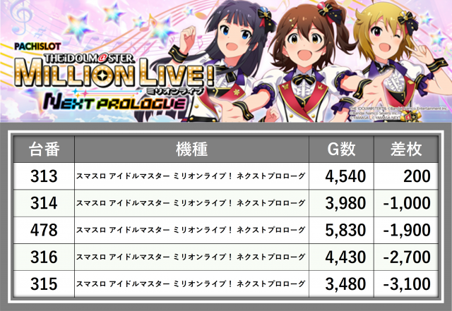 厳選された取材対象機種をはじめ、その他スロット全体から好記録が飛び出した!プレイヤーが楽しんだ1日を下記データにて振り返ってみて欲しい。