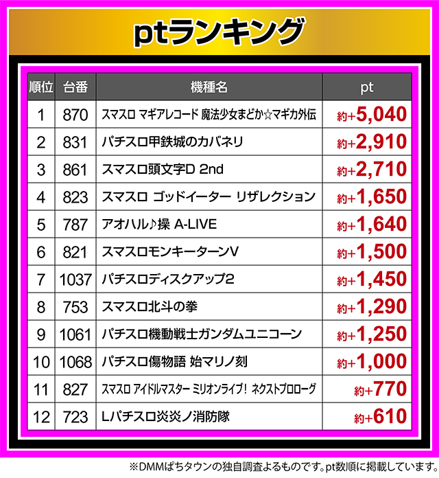 『スマスロ マギアレコード 魔法少女まどか☆マギカ外伝』の870番台が約+5,000ptオーバー!!