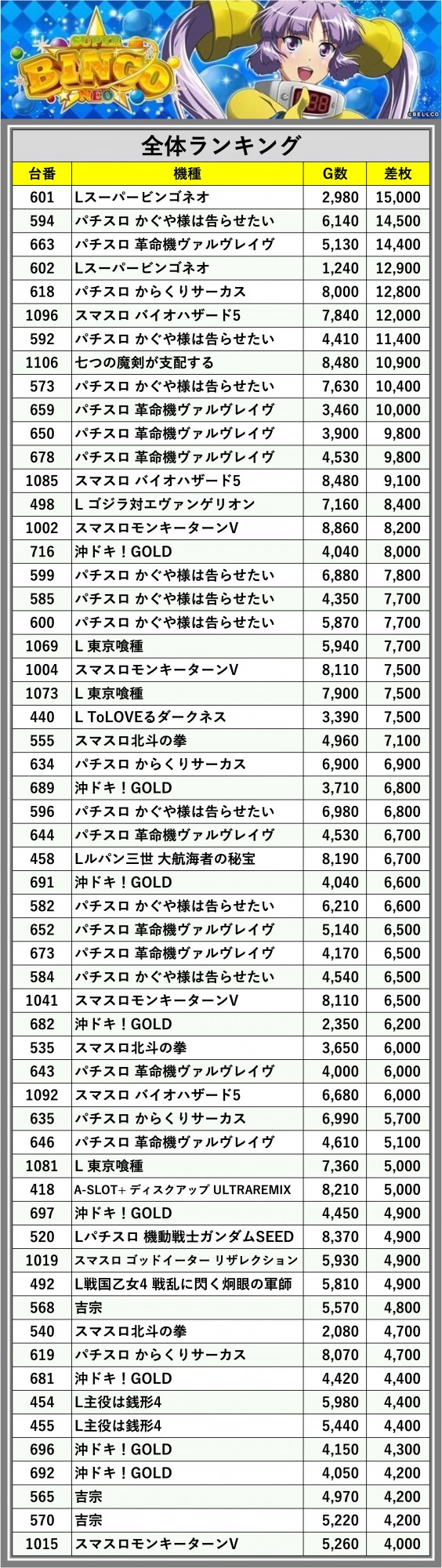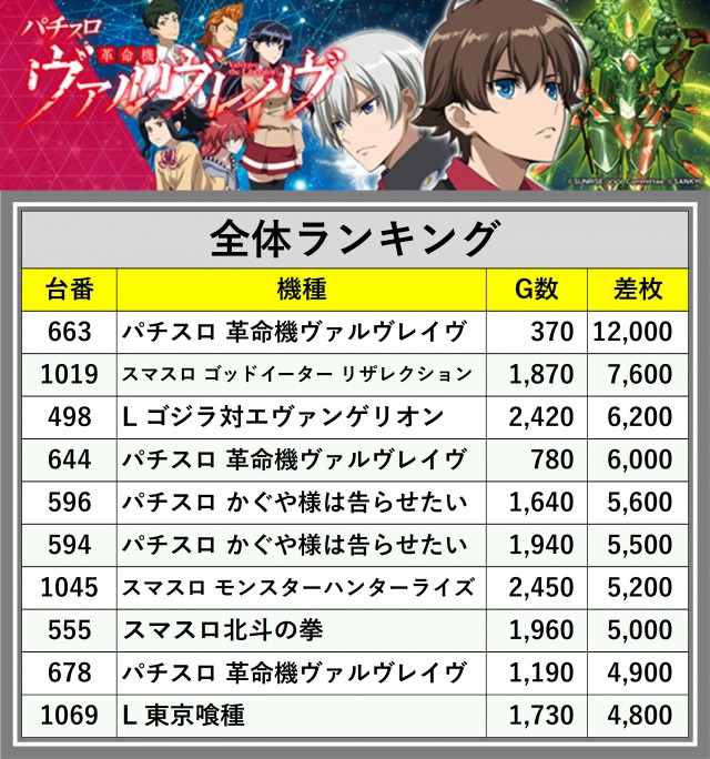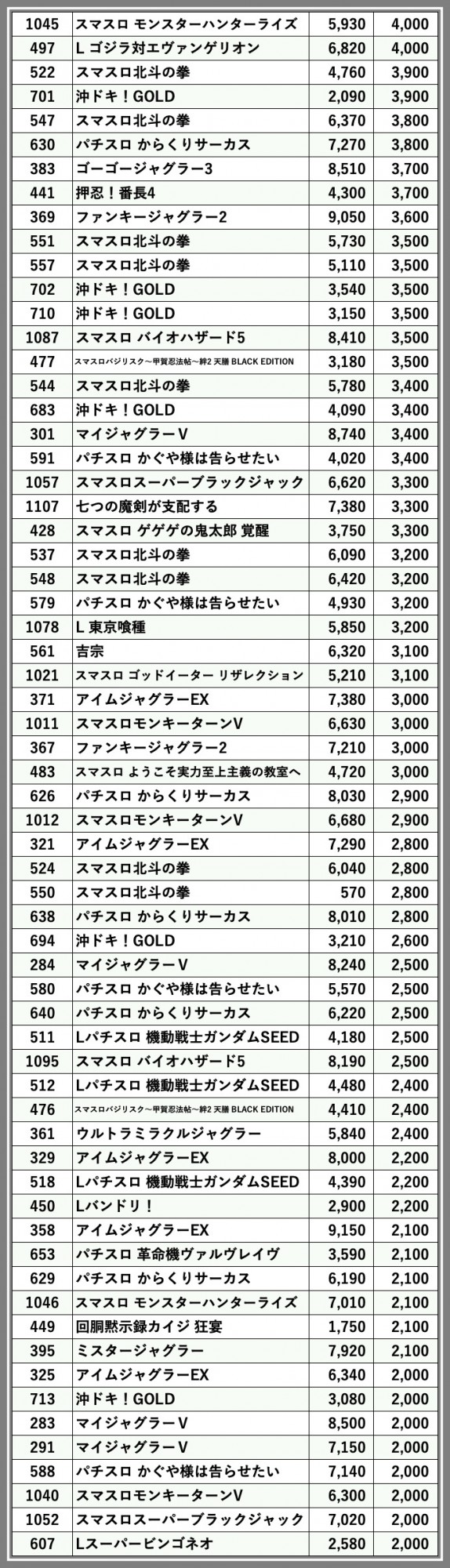 厳選された取材対象機種をはじめ、その他スロット全体から好記録が飛び出した!プレイヤーが楽しんだ1日を下記データにて振り返ってみて欲しい。