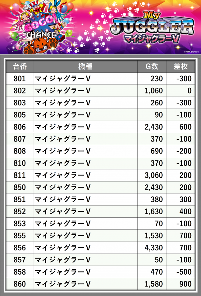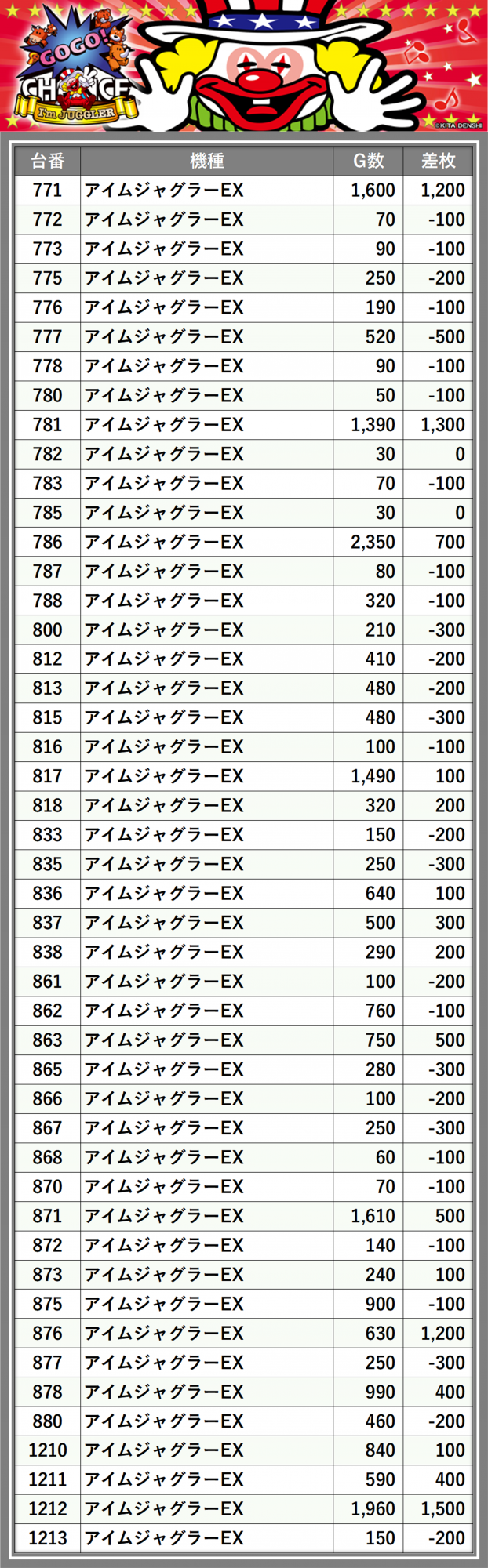 厳選された取材対象機種をはじめ、その他スロット全体から好記録が飛び出した!プレイヤーが楽しんだ1日を下記データにて振り返ってみて欲しい。