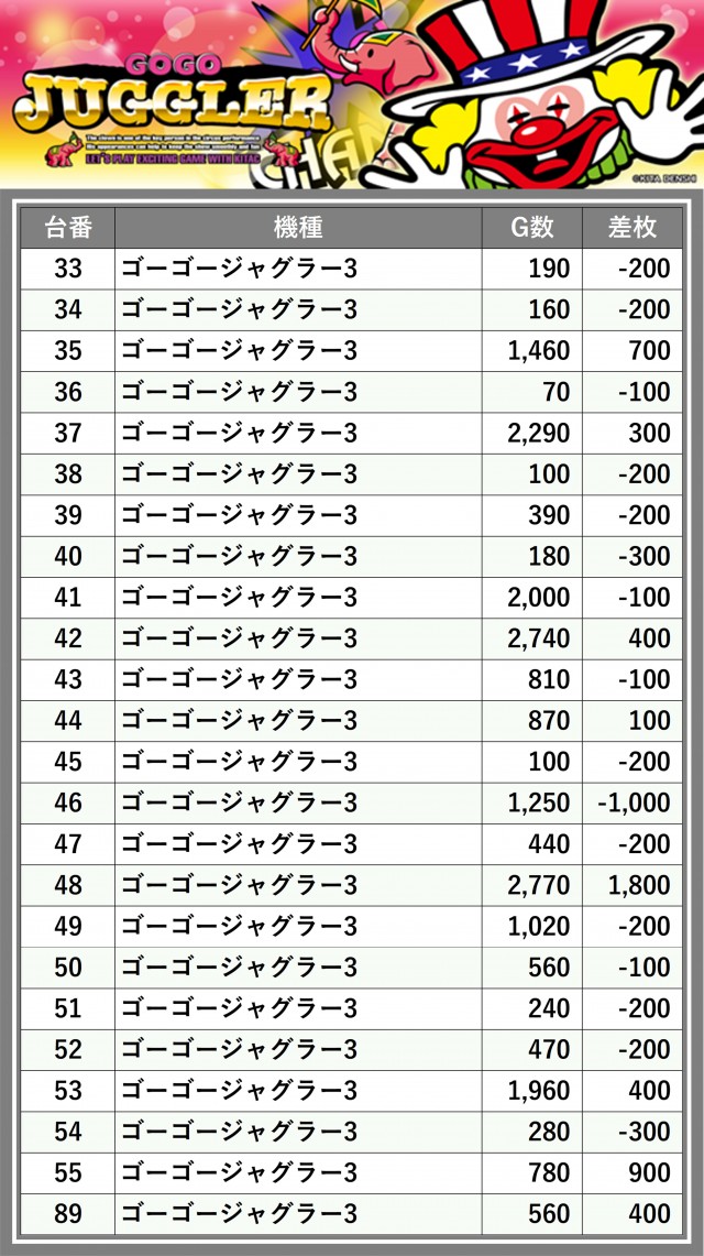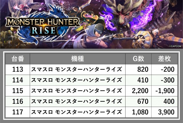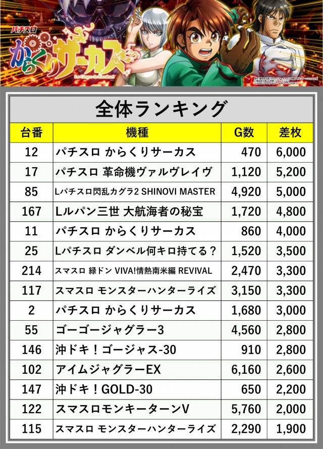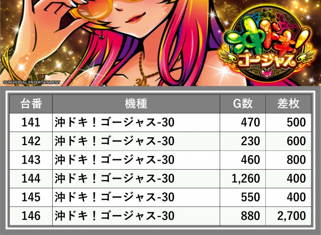 厳選された取材対象機種をはじめ、その他スロット全体から好記録が飛び出した!プレイヤーが楽しんだ1日を下記データにて振り返ってみて欲しい。