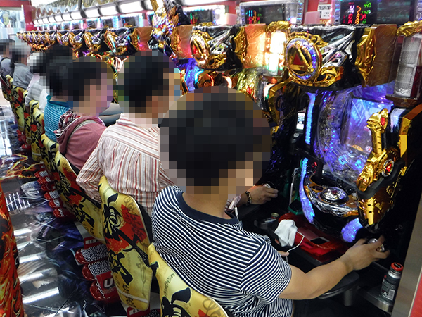 15時半ごろの4円パチンコを見ると、「CR牙狼GOLDSTORM翔」や「CRスーパー海物語IN JAPAN 319バージョン」、「ぱちんこCR北斗の拳7 転生」などが大盛況。機種の魅力を堪能しているプレイヤーが数多く見受けられた。