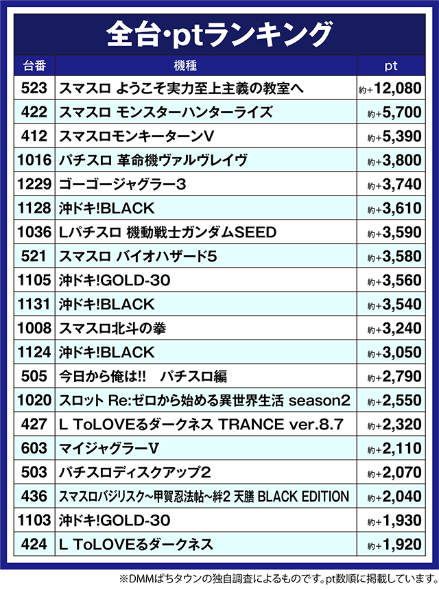 ※なお、本記事中のデータは全てDMMぱちタウンの独自調査によるものです