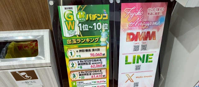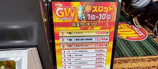 上写真の通り、同店では大型連休中も驚きの出玉が連発していたようで、低貸し専門とは思えない内容に驚いた。ゴールデンウィークを過ぎてその勢いが継続しているかが気掛かりだ。