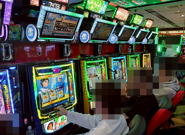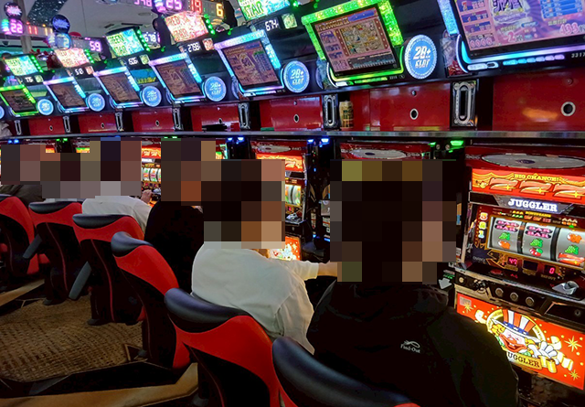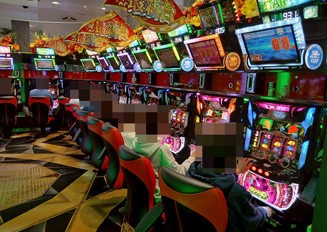 ホール全体の稼働率は約8割と高く、さまざまな機種が満席となっていた。