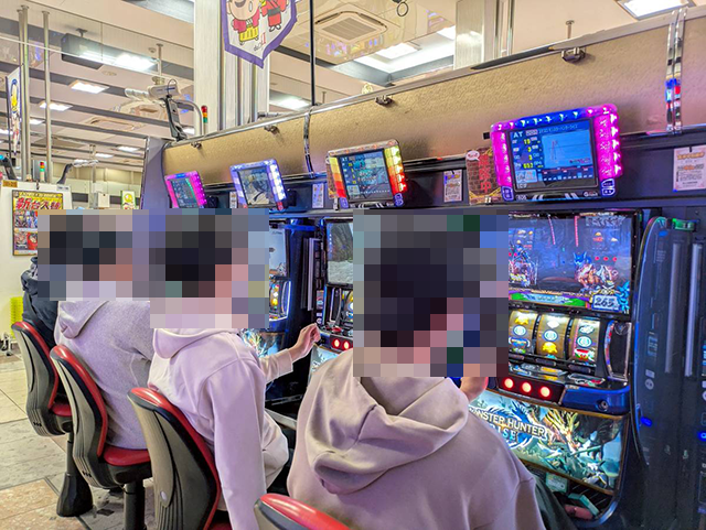パチスロをみてみると、4台が設置されている「スマスロ モンスターハンターライズ」が満席!