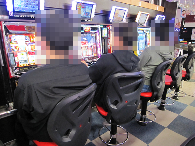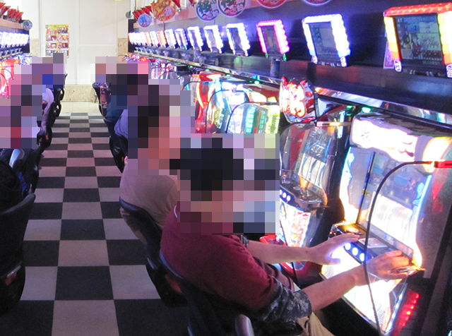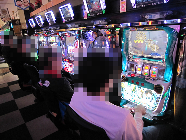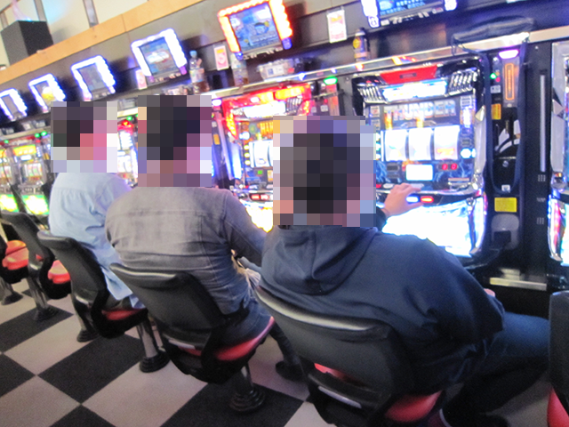 「マイジャグラーⅤ」も支持されており、うれしそうに遊技をおこなっている姿が並んでいた。