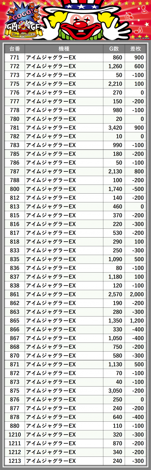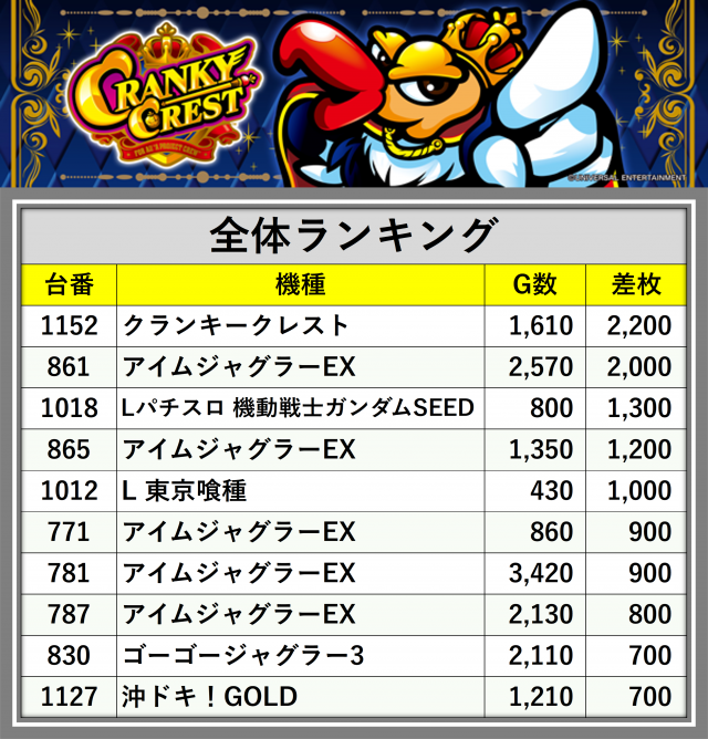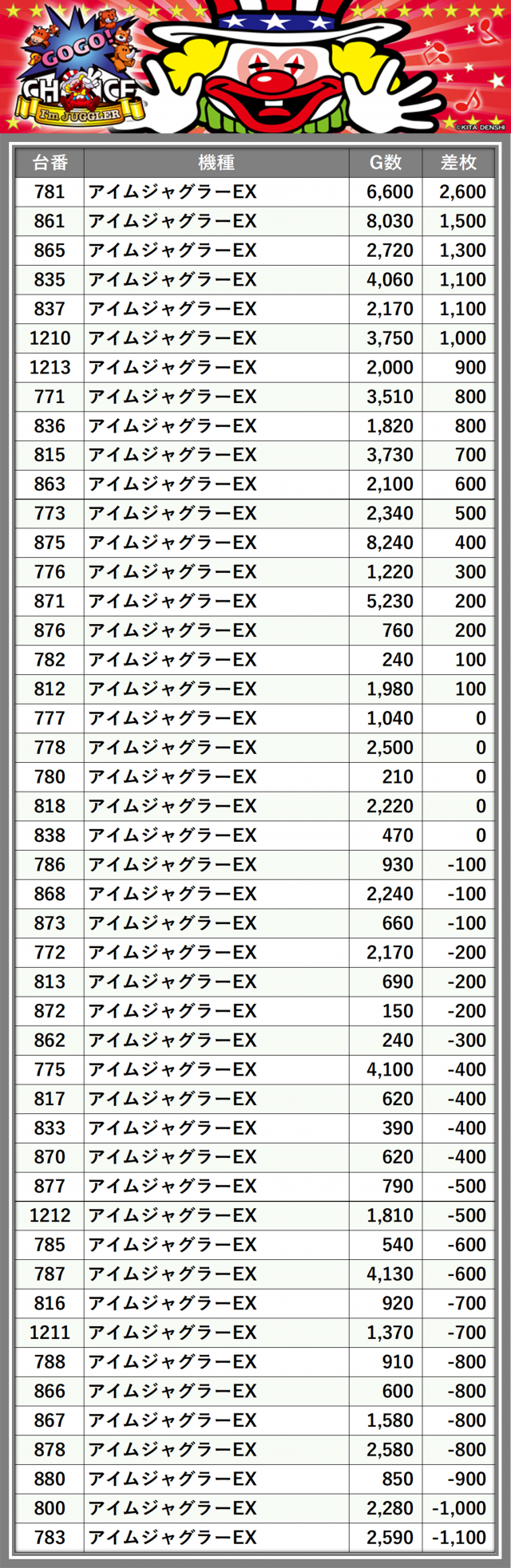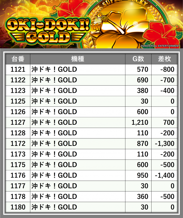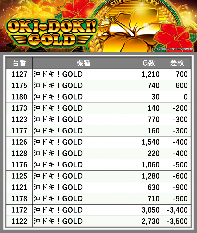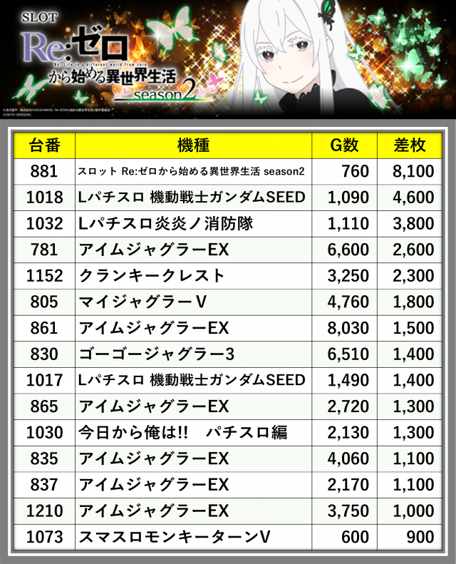 ※差枚数順に掲載しています