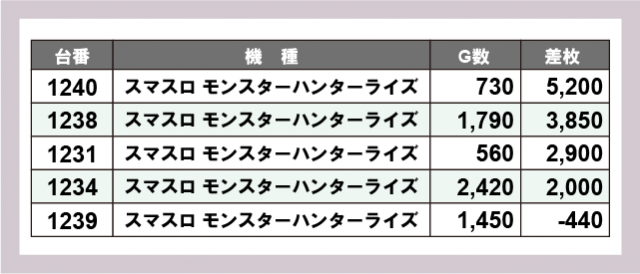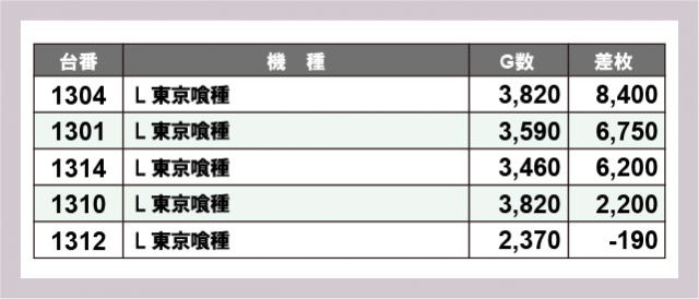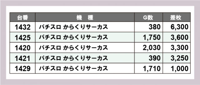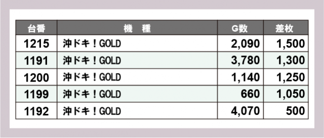 ※差枚数順に掲載しています