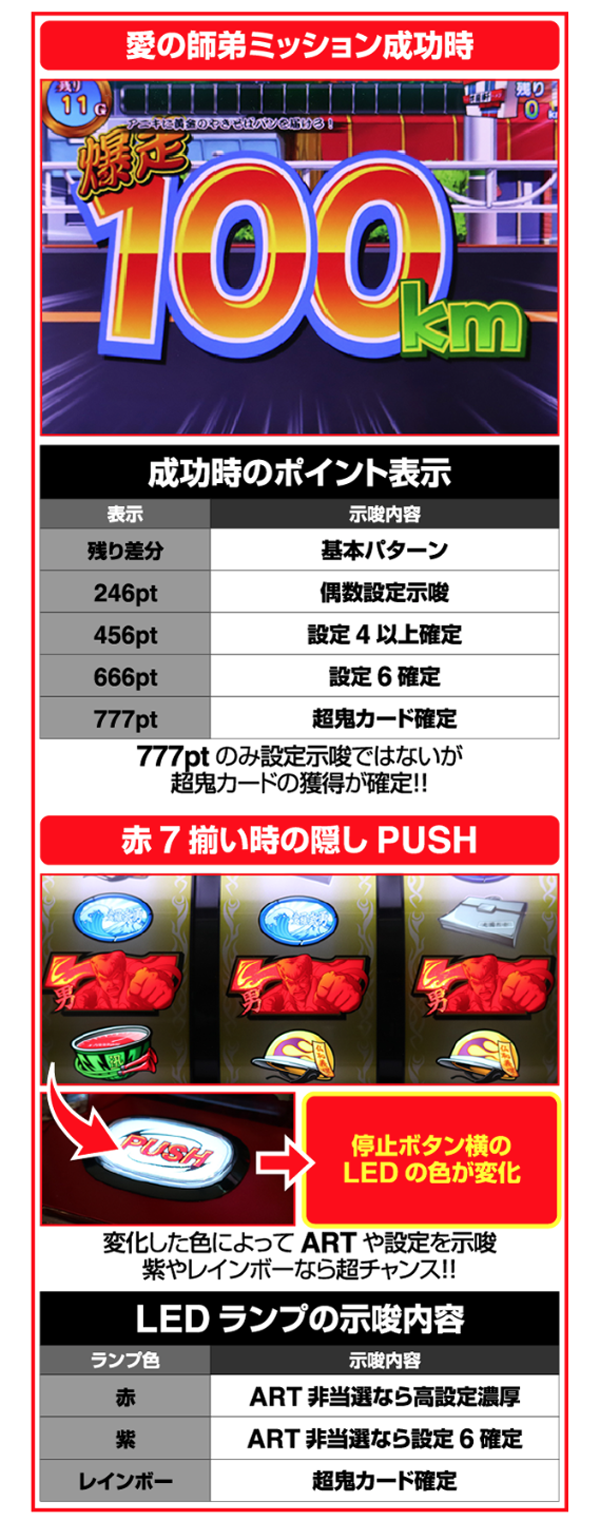 愛の師弟ミッション成功時は表示ポイントに注目。456ptで設定4以上、666ptならば設定6が濃厚となる。