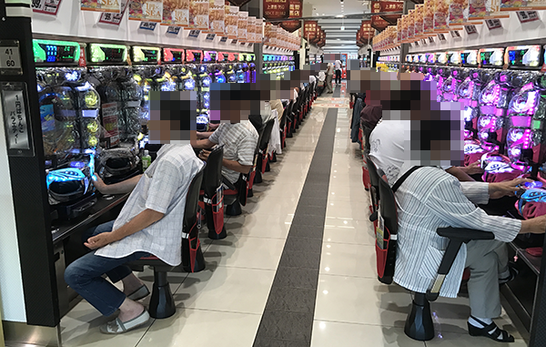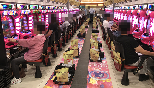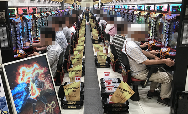 15時頃の4円パチンコでは、「ぱちんこCR北斗の拳7 転生」と「CRリング 終焉ノ刻」が盛況。華麗なパフォーマンスを披露するプレイヤーによって、シマ内に広がる光景は鮮やかなものとなっていた。