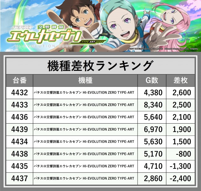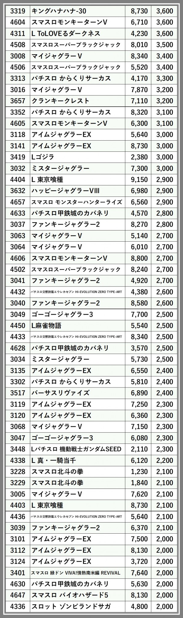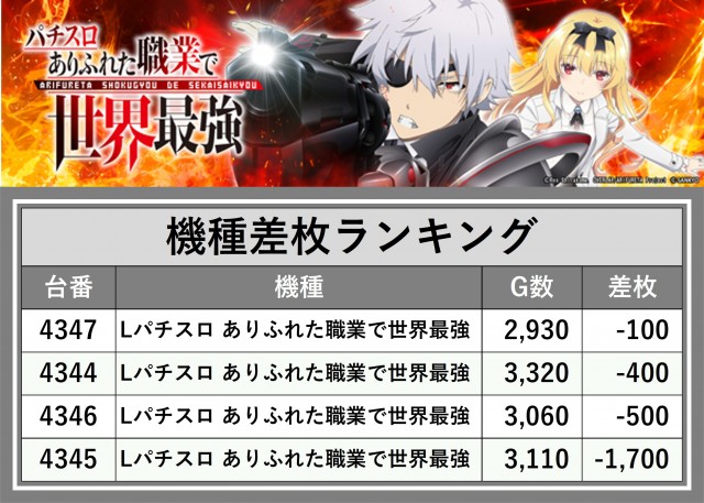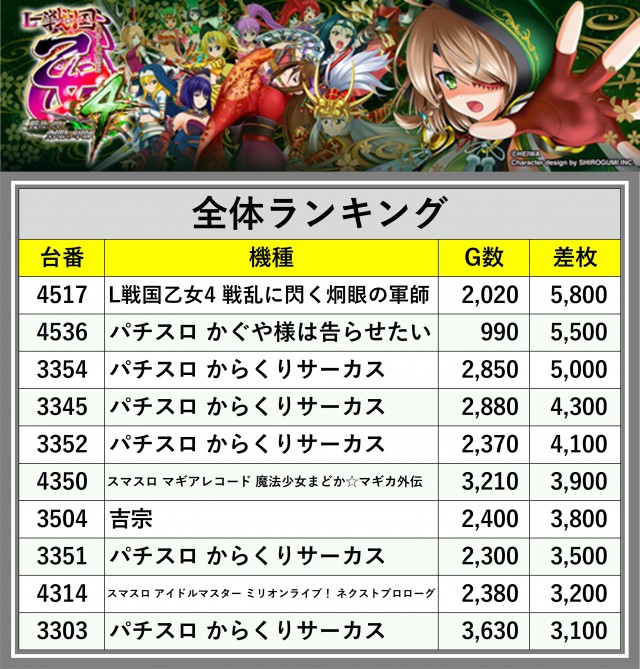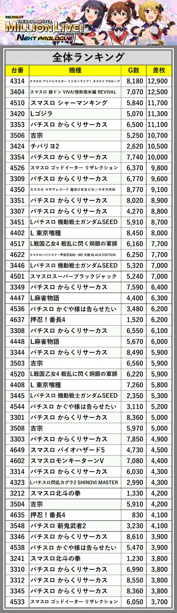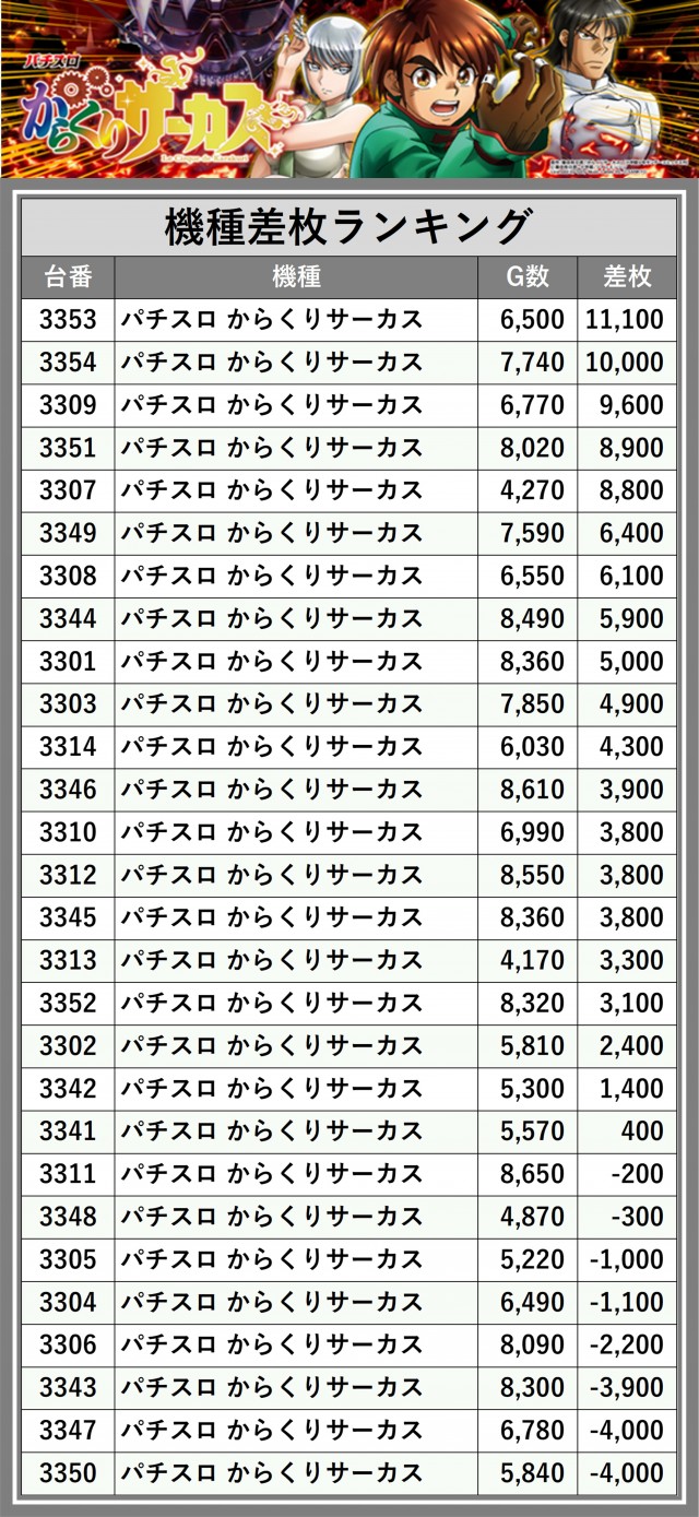 ※差枚数順に掲載しています