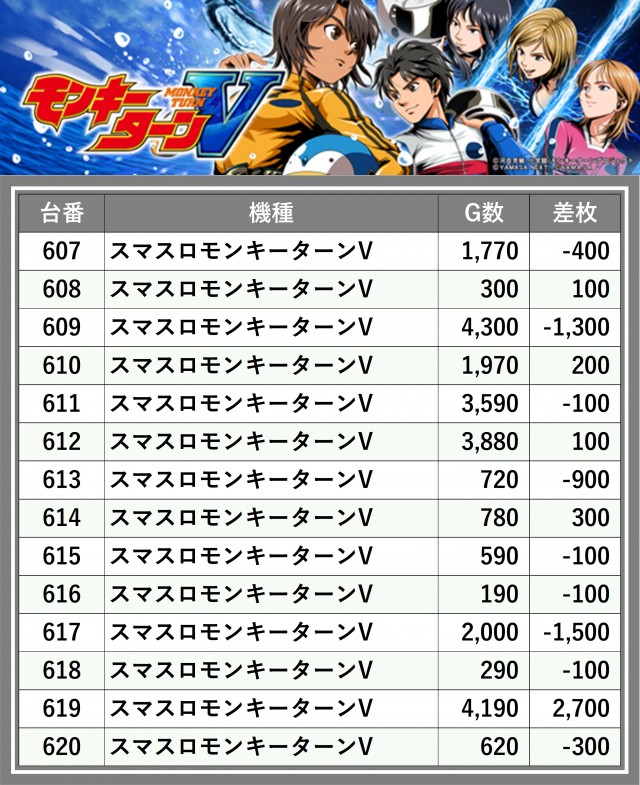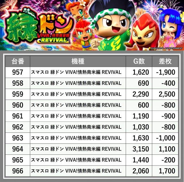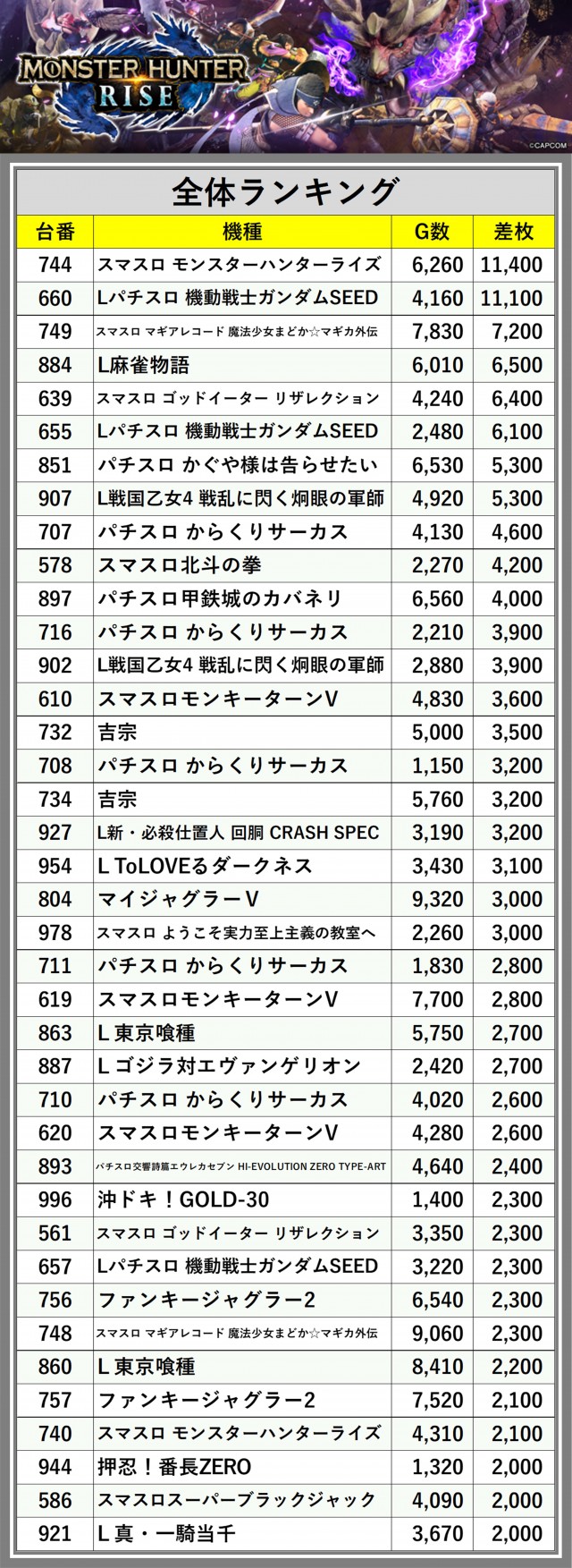 厳選された取材対象機種をはじめ、その他スロット全体から好記録が飛び出した!プレイヤーが楽しんだ1日を下記データにて振り返ってみて欲しい。