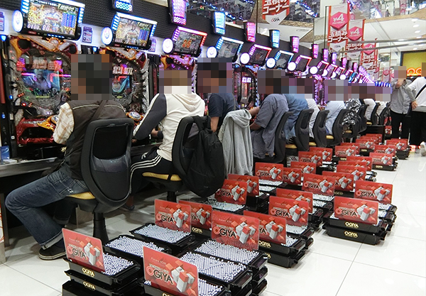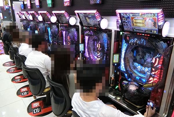 14時を過ぎた頃の4円パチンコでは、「ぱちんこCR真・北斗無双」や「CRぱちんこ GANTZ」などが盛況。華麗なパフォーマンスを披露するプレイヤーによって、シマ内に広がる光景は鮮やかなものとなっていた。