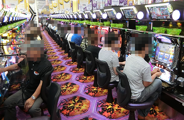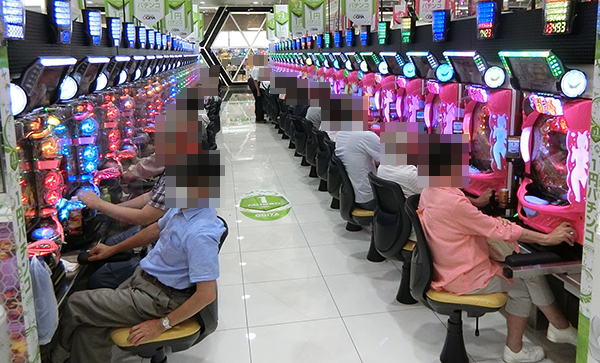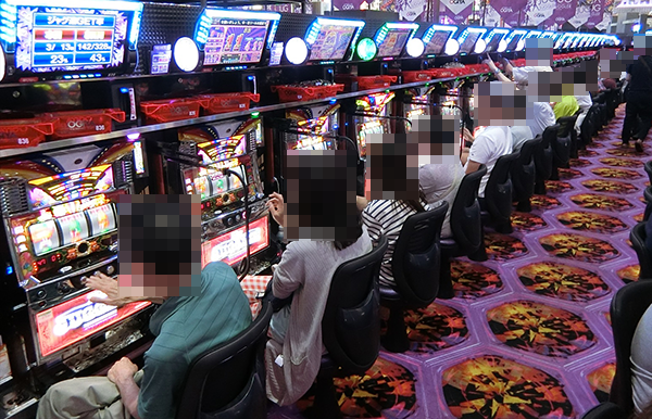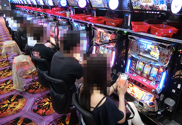 1000円/188枚パチスロの支持も厚く、空き台は少ない。