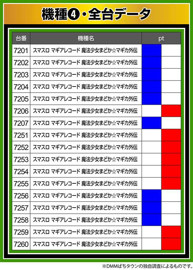 『スマスロ マギアレコード 魔法少女まどか☆マギカ外伝』では、7206番台や7251番台などがプラス。