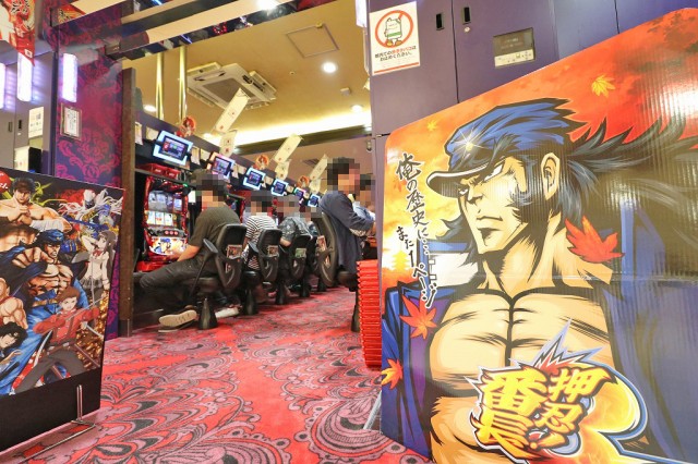 | 人気筆頭!といってもいいほど注目を集めたのは『バジリスク~甲賀忍法帖~絆』と『押忍!番長3』。パチンコと同様、じわじわと稼働を伸ばしていったのは『ジャグラー』シリーズや新台豊富なバラエティーコーナー。 | |