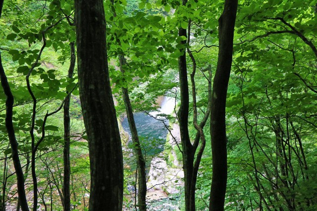 秋保大滝は、鎮座する「秋保不動(西光寺)」の脇を抜けると、次第に大きくなる水音と共に姿を現します。