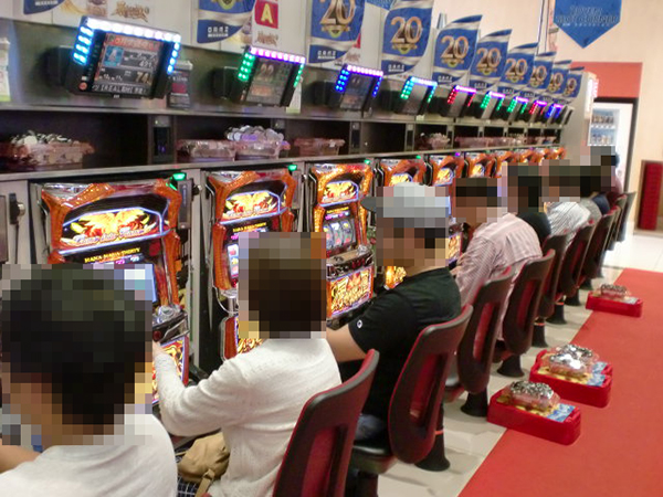 取材日は朝から約50名のプレイヤーが集まり、開店直後は特にパチスロコーナーの盛り上がりが大きく、定番の「バジリスク~甲賀忍法帖~絆」や「ハナハナホウオウ-30」などの沖スロが好評であった。