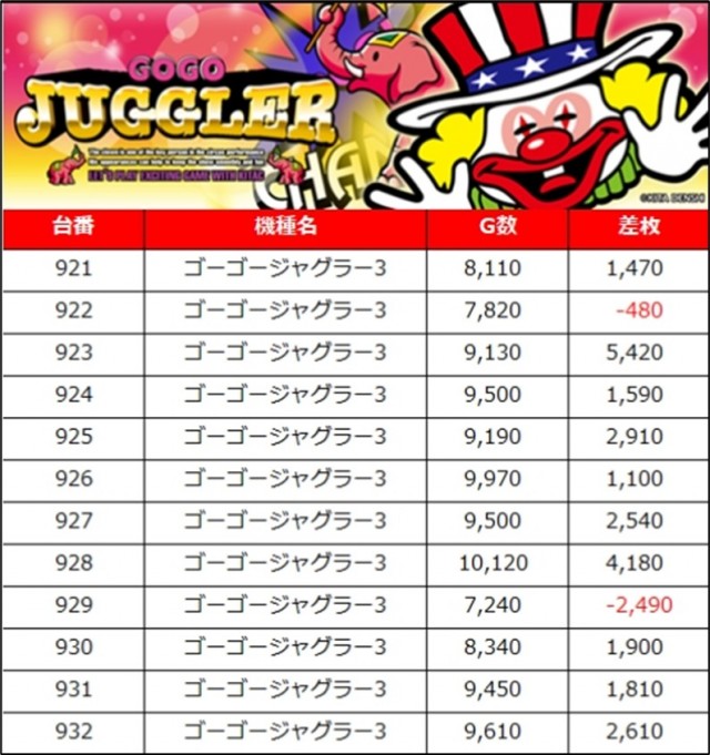 平均差枚:2337枚