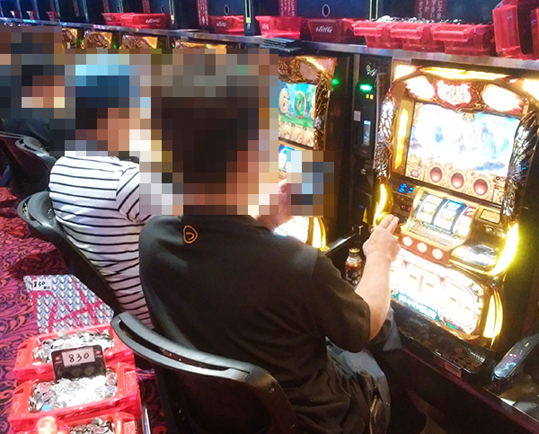 パチスロの支持も厚く、とくに「バジリスク~甲賀忍法帖~絆」が盛況。機種の性能を最大限まで引き出しているといった姿もあり、明るい雰囲気となっていた。