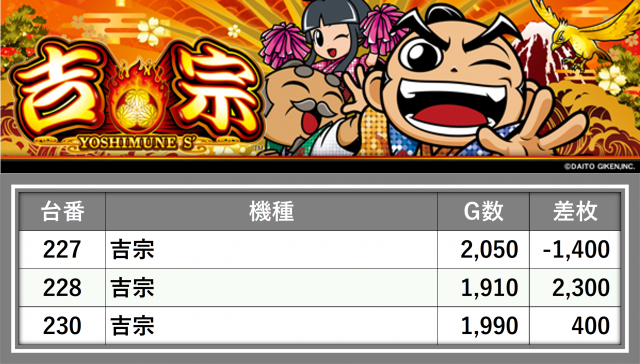 厳選された取材対象機種をはじめ、その他スロット全体から好記録が飛び出した!プレイヤーが楽しんだ1日を下記データにて振り返ってみて欲しい。