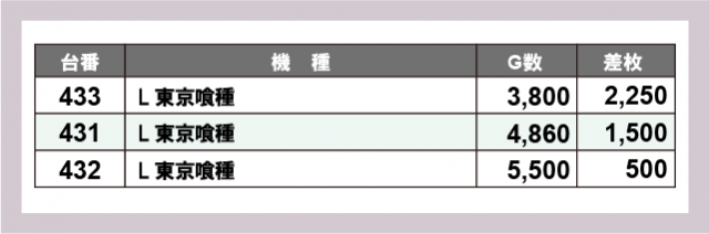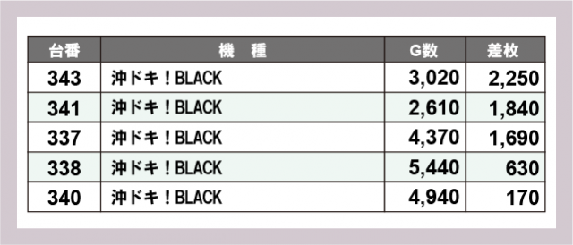 ※差枚数順に掲載しています