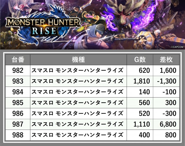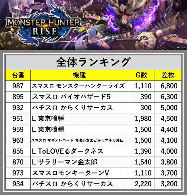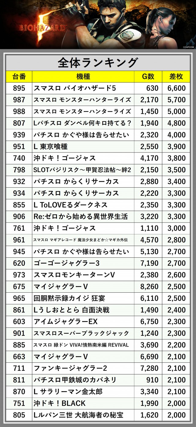 厳選された取材対象機種をはじめ、その他スロット全体から好記録が飛び出した!プレイヤーが楽しんだ1日を下記データにて振り返ってみて欲しい。